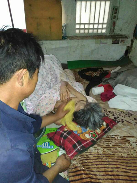 因为上有岳父、岳母,下有孩子,他不能出去打工,只能靠几亩土地维持生活,生活过得很清贫,但他没有一名怨言。更没有扔下两个老人不管。每天下地干活回来,还得干家务,累得他真的有些力不从心了,他只好躺下休息一会,缓过来之后,再继续打理孩子和年迈的岳父、岳母。但他从没有放弃过,想起妻子去世前的眼神和自己曾经对妻子承诺的事,就有了不但要生存下去,而且一定要把老人照顾好的信念,也算是为妻子完成任务了。然而2011年初,王中印的岳父突然得了半身不遂,这给他原本忙碌的生活更增加了负担,但他始终朝夕守在老人身边,四处为老人寻医问药,给老人按摩手脚,希望老人早点康复,但终因老人年纪大了,还是没能坚持住,一个月后岳父去世了。本来就身体不好的岳母,经受不了这样的打击,病情加重,从此卧床不起了,完全丧失了生活自理能力。面对岳母这样的身体现状,王中印只好每天做好早饭,然后下地干活,中午回家照顾岳母,就这样每天端屎、端尿,洗衣做饭,因为岳母先天沟通有障碍,只要发现老人有异常,就赶紧叫来乡村医生给检查身体,生怕因为自己的疏忽耽误了岳母的病情。如今妻子已经去世17年,但他就17年如一日地照顾着这个特殊身体状况的岳母。亲生儿子、女儿也不一定能做到王中印这样,有句话说得好,“无论什么事,说起来容易,做起来难”。17年折合成多少个日日夜夜,饱含了多少心酸,只有王中印自己知道。